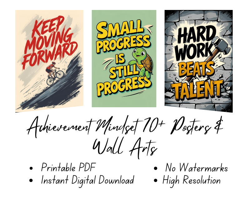 Achievement Mindset 70+ Printable Posters & Wall Arts | High-Resolution Instant Download Decor