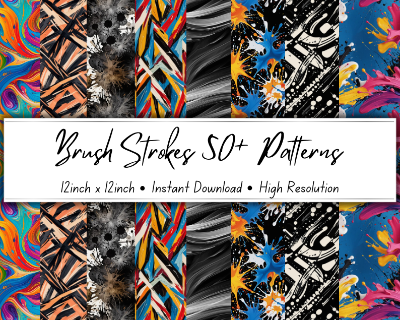 Brush Strokes 50+ Patterns Collection | 12x12 Inches | High-Resolution Digital Printables | Instant Download