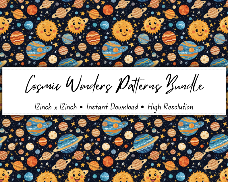 Cosmic Wonders Patterns Bundle | 12x12 Inches | High-Resolution Digital Printables | Instant Download