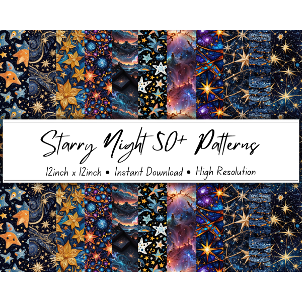 Starry Night 50+ Patterns Collection | 12x12 Inches | High-Resolution Digital Printables | Instant Download
