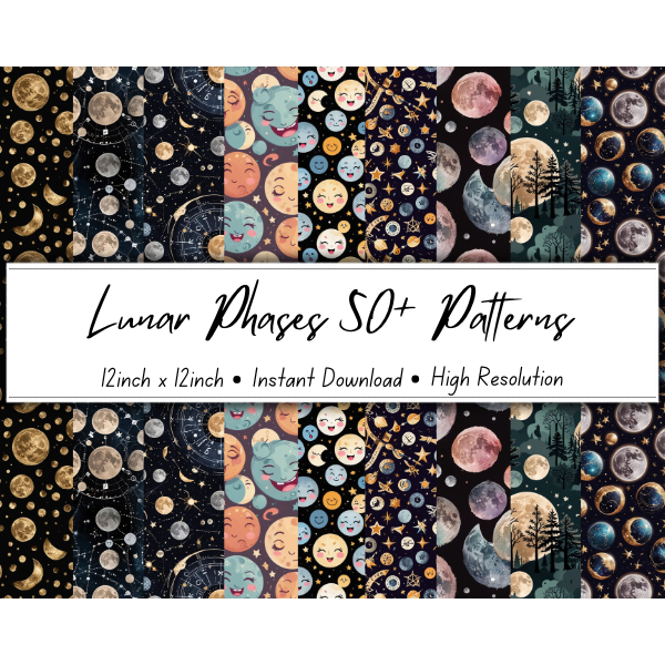 Lunar Phases 50+ Patterns Collection | 12x12 Inches | High-Resolution Digital Printables | Instant Download