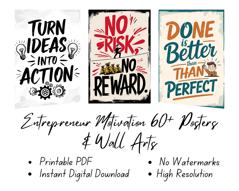 Entrepreneur Motivation 60+ Printable Posters & Wall Arts | High-Resolution Instant Download Decor