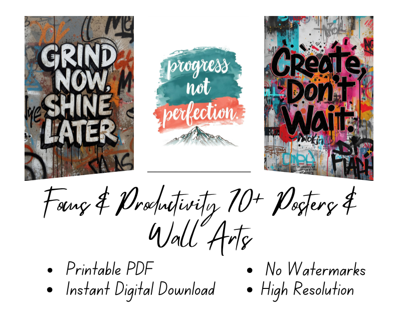 Focus & Productivity 70+ Printable Posters & Wall Arts | High-Resolution Instant Download Decor
