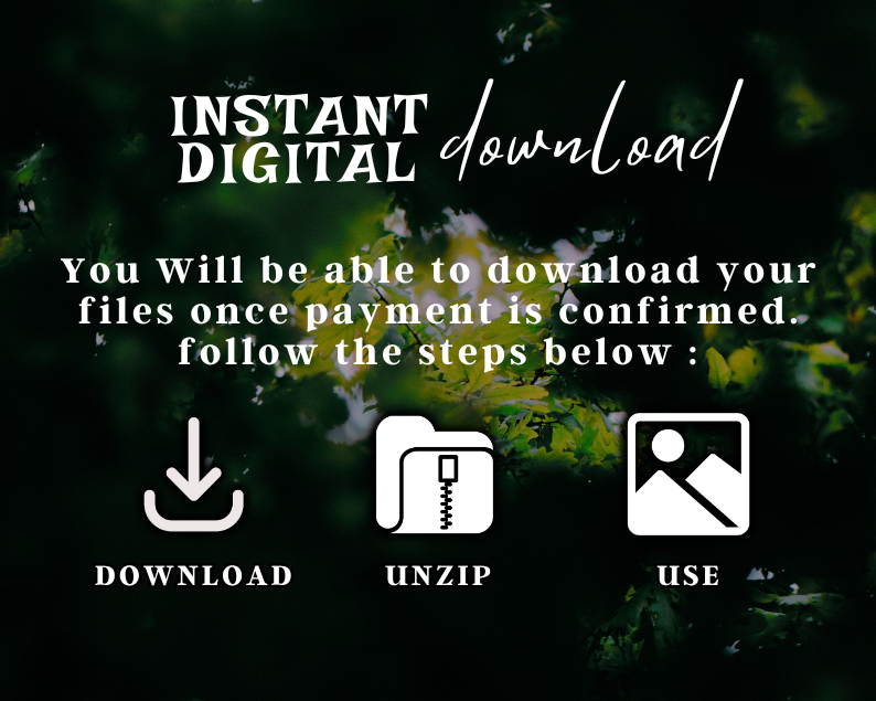 Digital Product Only: No physical product or printed material will be shipped. You will receive digital files only.