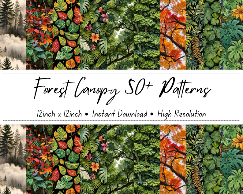 Forest Canopy 50+ Patterns Collection | 12x12 Inches | High-Resolution Digital Printables | Instant Download