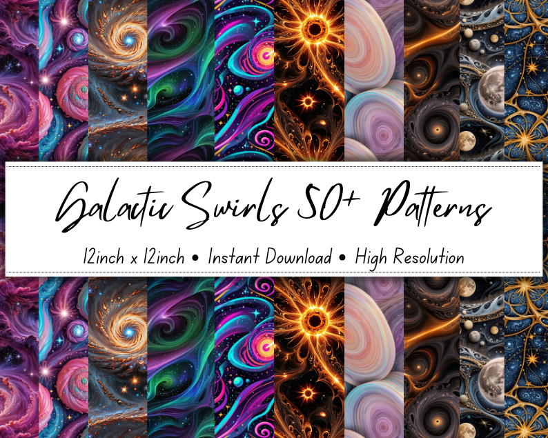 Galactic Swirls 50+ Patterns Collection | 12x12 Inches | High-Resolution Digital Printables | Instant Download