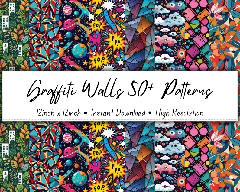 Graffiti Walls 50+ Patterns Collection | 12x12 Inches | High-Resolution Digital Printables | Instant Download