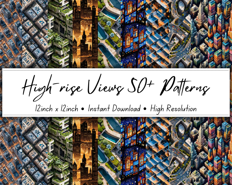 High-rise Views 50+ Patterns Collection | 12x12 Inches | High-Resolution Digital Printables | Instant Download