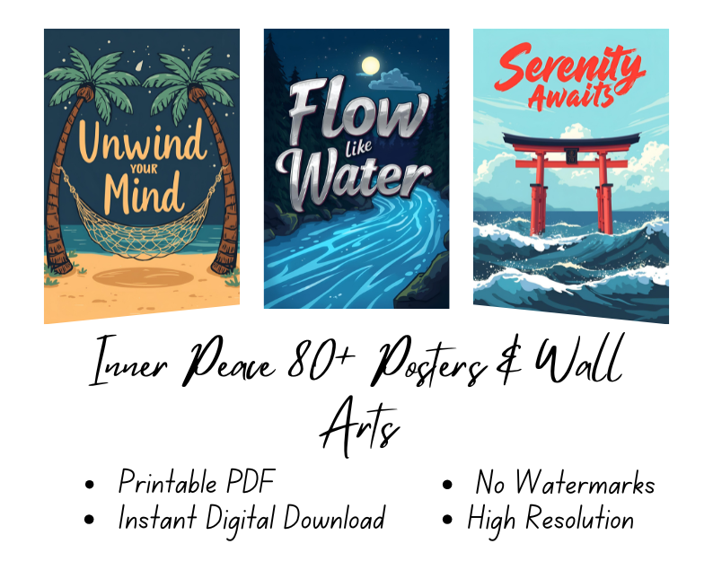 Transform your space into a sanctuary of calm and mindfulness with our Inner Peace Printable Poster & Wall Art Bundle. This collection features 80+ beautifully designed, high-resolution posters that inspire serenity, balance, and positivity in your home, office, or personal retreat.