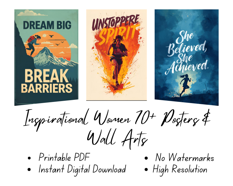 Celebrate the power, strength, and wisdom of women with this exclusive collection of 70+ inspirational printable posters and wall art designs. Each piece is crafted with motivational quotes and elegant visuals, perfect for bringing daily encouragement to your home, office, classroom, or creative space.