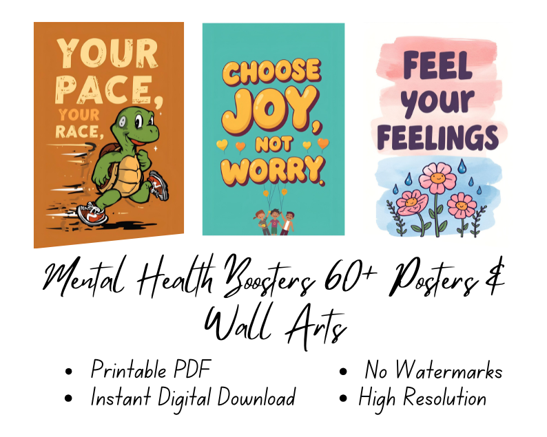 Mental Health Boosters 60+ Posters & Wall Arts | High-Resolution Instant Download Decor
