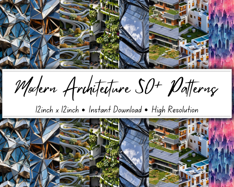 Modern Architecture 50+ Patterns Collection | 12x12 Inches | High-Resolution Digital Printables | Instant Download