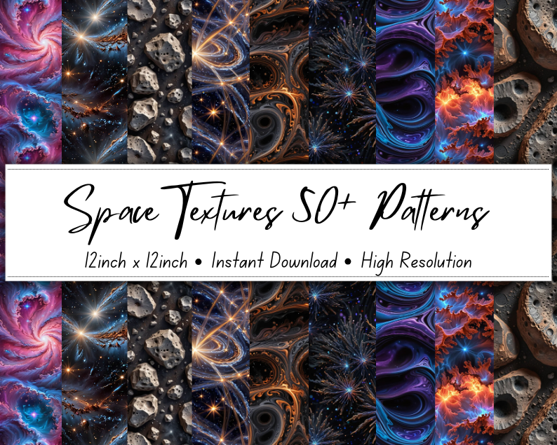 Space Textures 50+ Patterns Collection | 12x12 Inches | High-Resolution Digital Printables | Instant Download