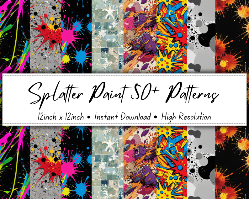 Splatter Paint 50+ Patterns Collection | 12x12 Inches | High-Resolution Digital Printables | Instant Download
