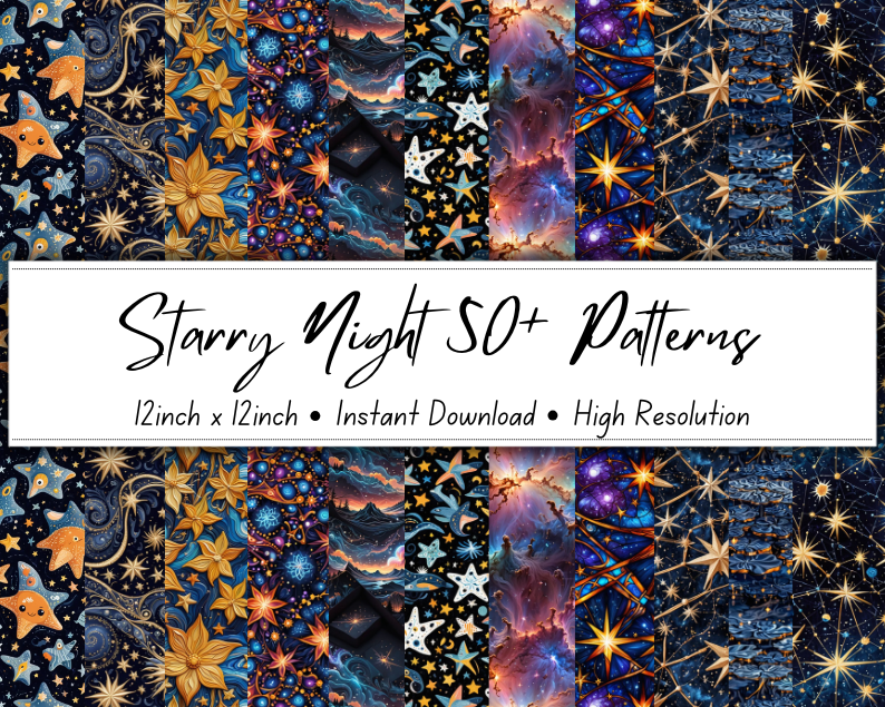 Starry Night 50+ Patterns Collection | 12x12 Inches | High-Resolution Digital Printables | Instant Download