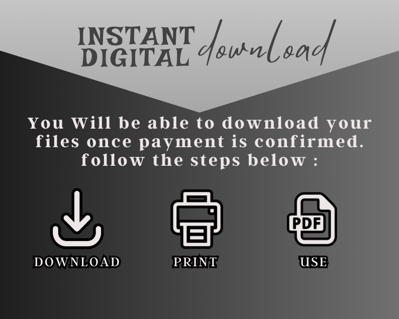 Digital Product Only: No physical product or printed material will be shipped. You will receive digital files only.