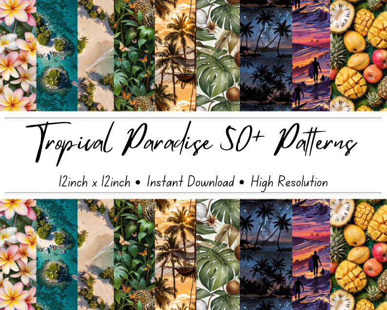 Tropical Paradise 50+ Patterns Collection | 12x12 Inches | High-Resolution Digital Printables | Instant Download