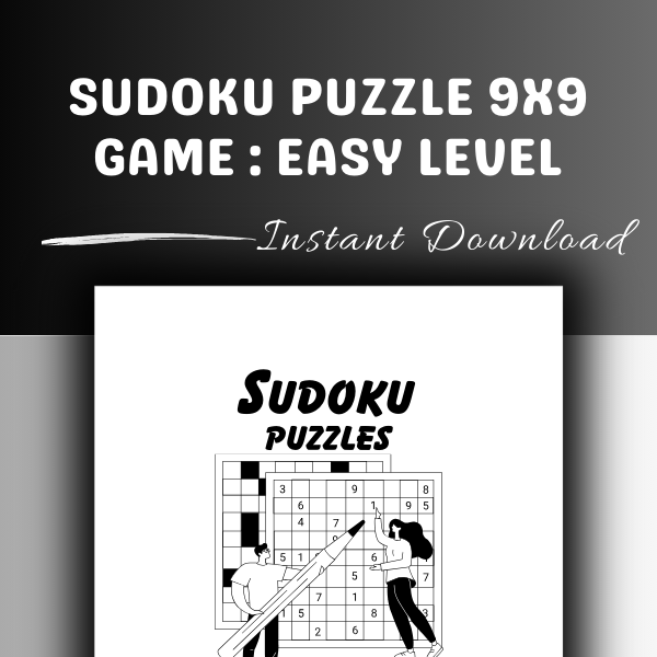 Sudoku Puzzle 9x9 Game : Easy Level for Smart Minds with Solutions | Printable Pages | Instant Download PDF