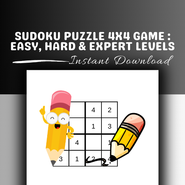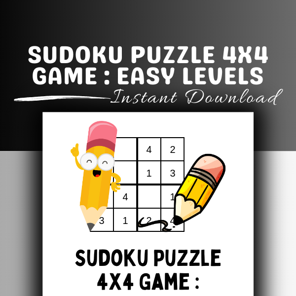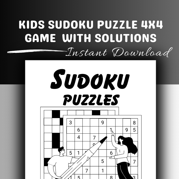 Kids Sudoku Puzzle 4x4 Game for Smart Minds with Solutions | Printable Pages | Instant Download PDF