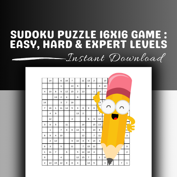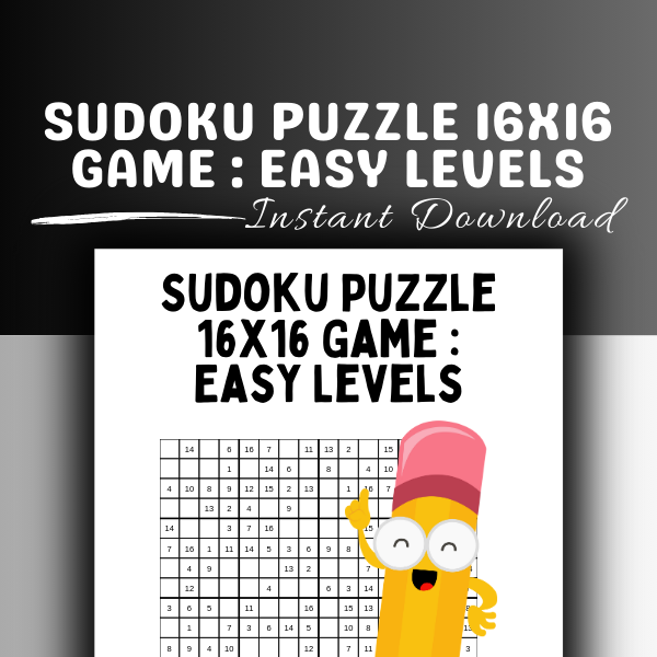 Sudoku Puzzle 16x16 Game : Easy Level for Smart Minds with Solutions| Printable Pages | Instant Download PDF