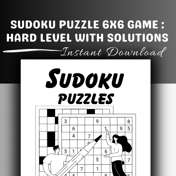 Sudoku Puzzle 6x6 Game : Hard Level for Smart Minds with Solutions | Printable Pages | Instant Download PDF