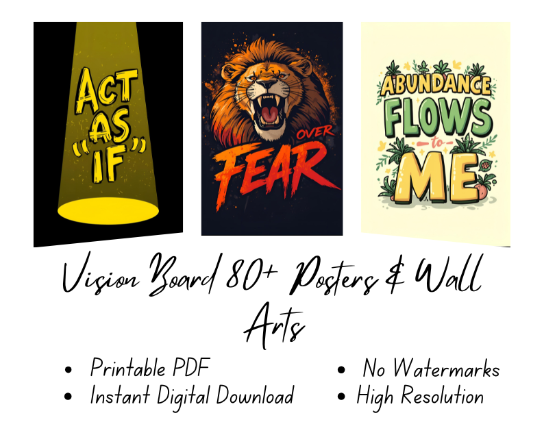 Vision Board 80+ Printable Posters & Wall Arts | High-Resolution Instant Download Decor